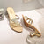 Add a sparkling touch to your festive ensemble with these gold slip-on ethnic heels by Valentino. Adorned with crystal-studded straps and a statement jewel in the heel, these open-toe slip ons are perfect for weddings, parties, and traditional occasions.