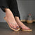 A sleek and stylish pair of slip-on flats featuring delicate straps with a touch of shimmer, designed for both elegance and everyday comfort.